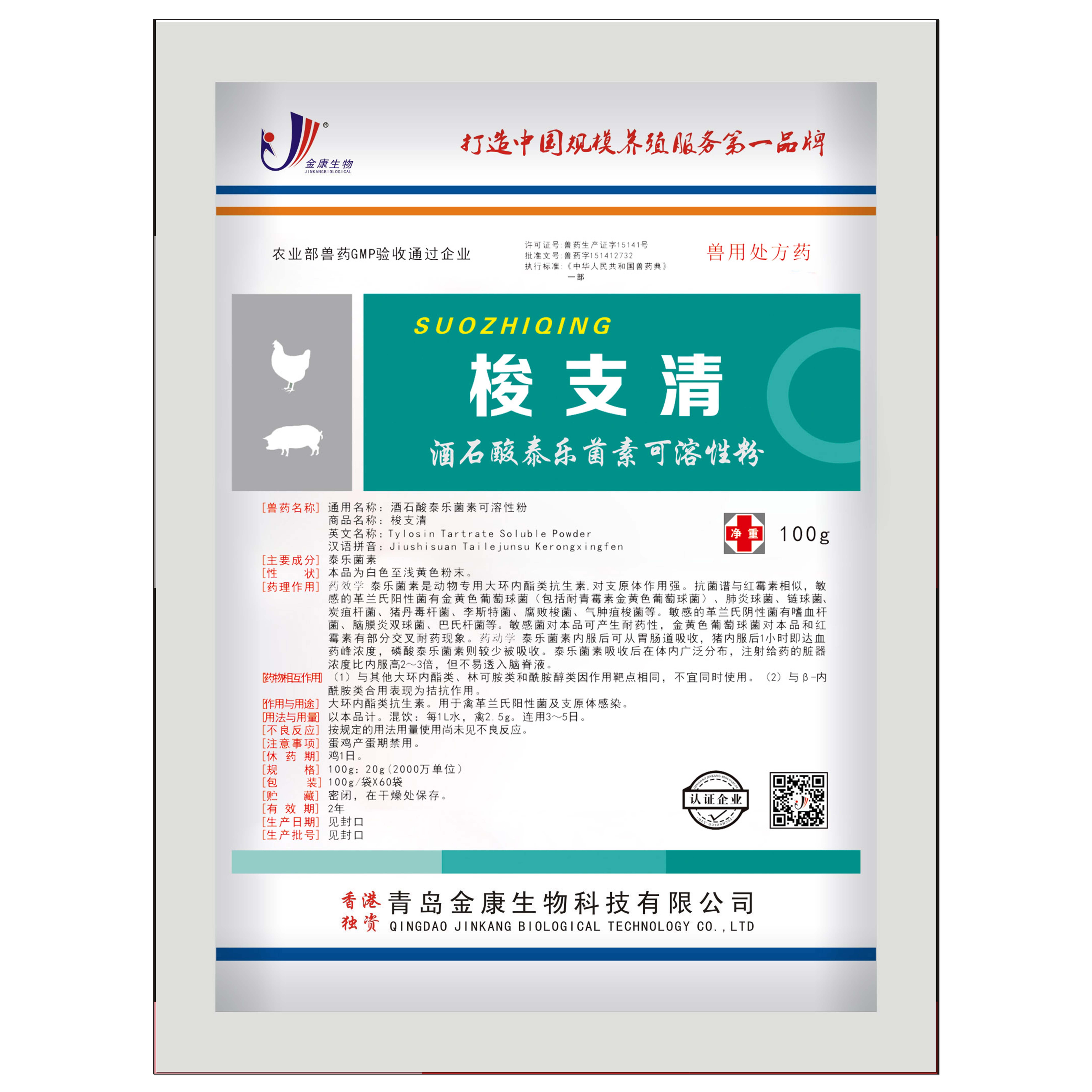 【獸藥名稱】通用名稱:酒石酸泰樂菌素可溶性粉 商品名稱:梭支清