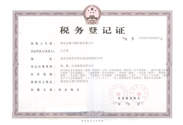 公司稅務(wù)登記證