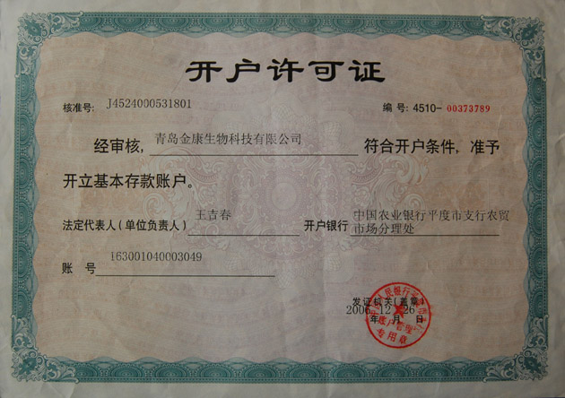 公司銀行開戶許可證