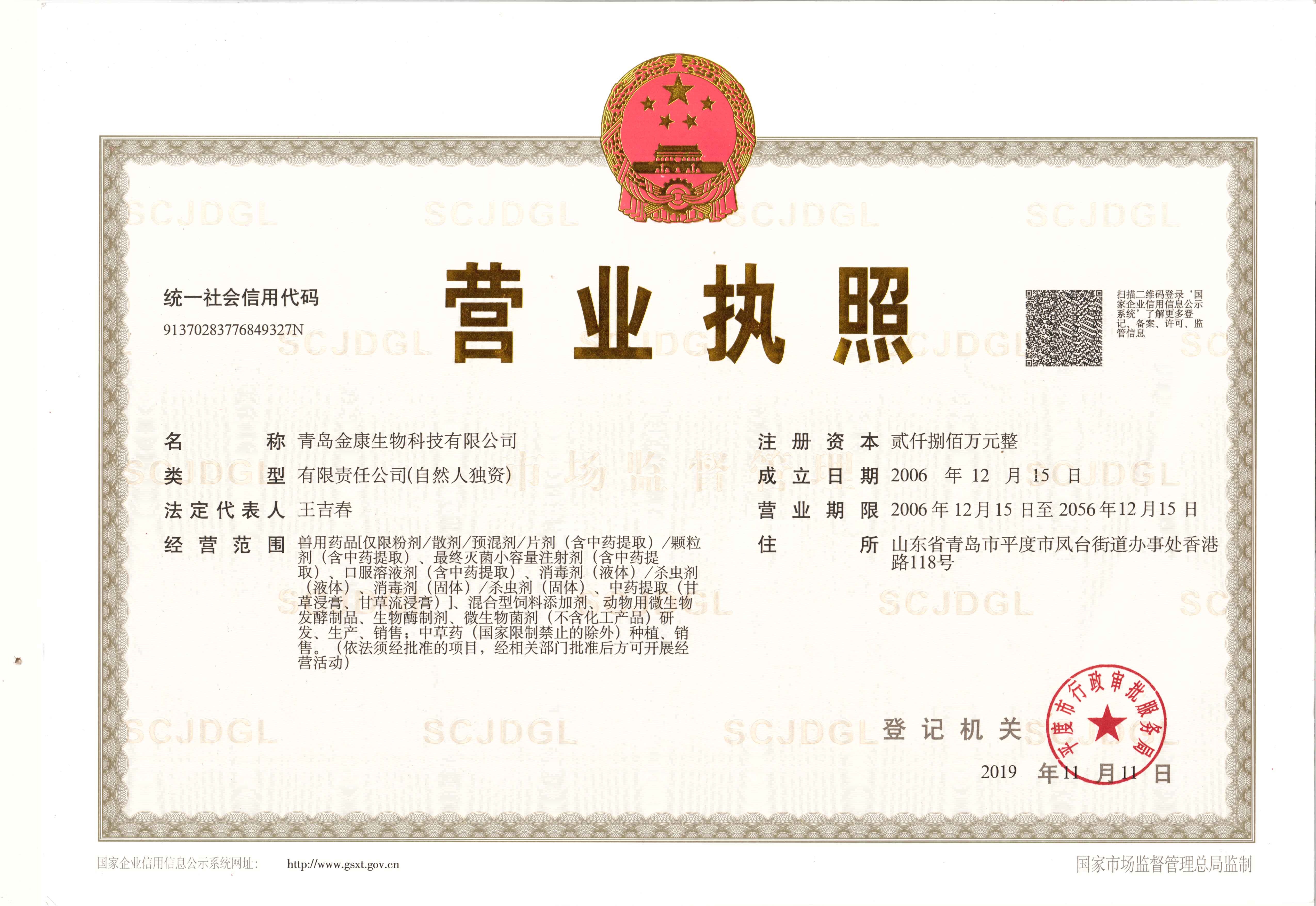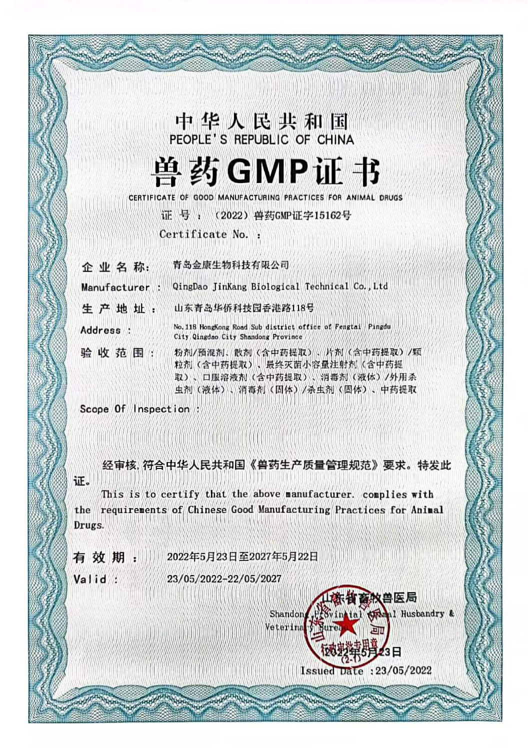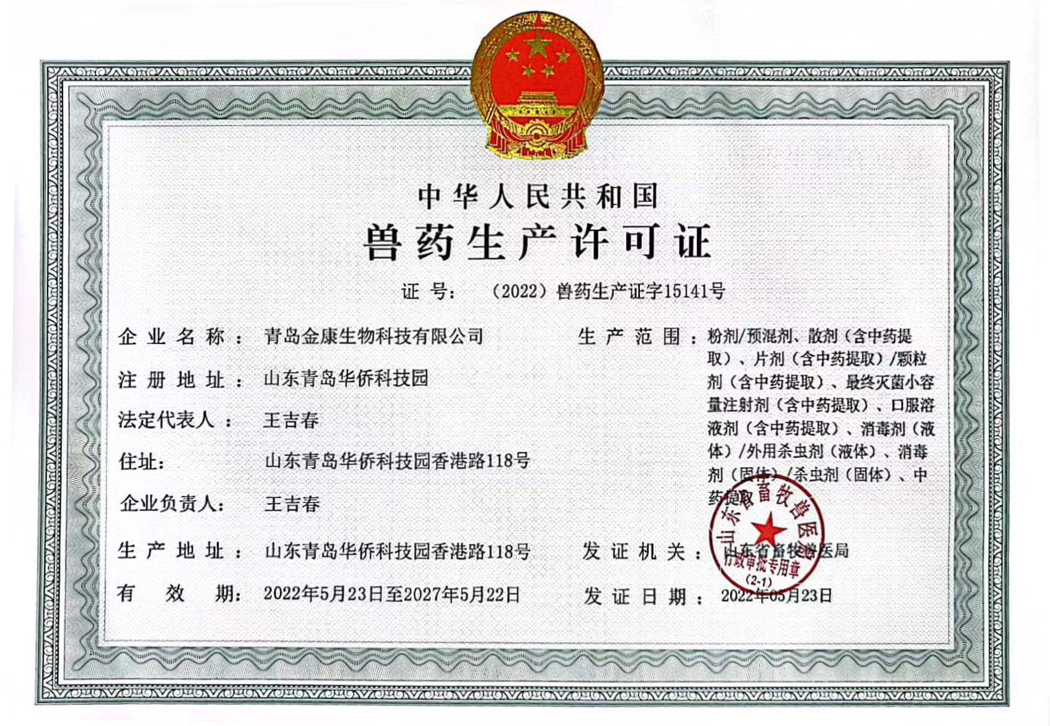 公司獸藥生產(chǎn)證書