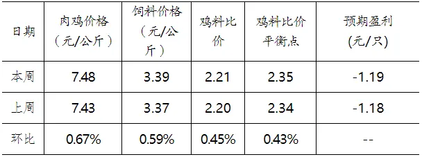 未來(lái)肉雞預(yù)期虧損1.19元/只